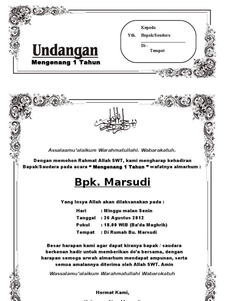Contoh Undangan Peringatan 40 100 354 1000 Hari Atau Haul. Jemputan ke majlis doa selamat dan kesyukuran. Berkenaan isu ini Mesyuarat Panel Kajian Syariah Panel Pakar Syariah yang bersidang pada 23 25 Februari 2006 telah bersetuju memutuskan bahawa.